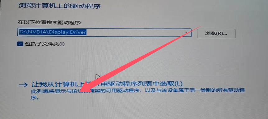 5.点击让我从计算机上可用驱动程序列表表中选取