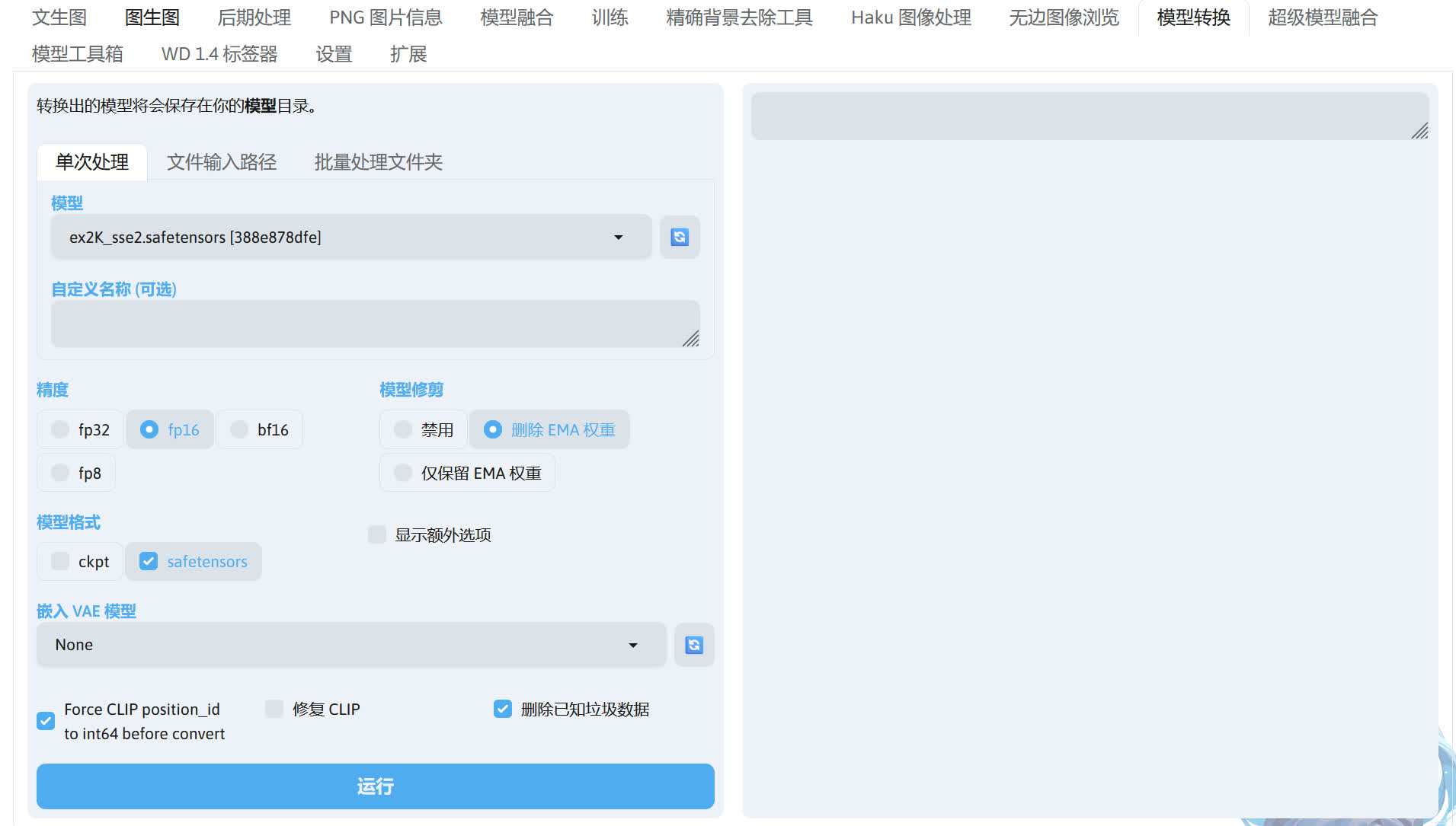 sd-webui-model-converter 扩展下载:https://github.com/Akegarasu/sd-webui-model-converter