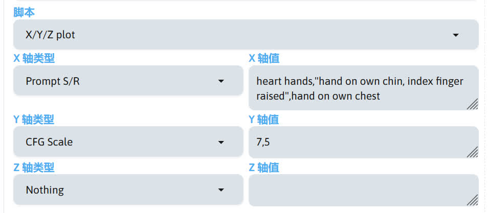 该脚本的功能类似 X/Y/Z 脚本中的 Prompt S/R 功能,通过分隔符对提示词进行组合。