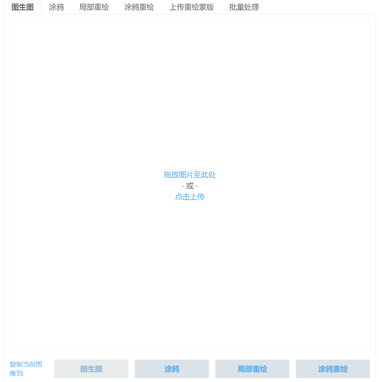在图生图的画布中提供了不同的工具对导入画布的图片进行处理。