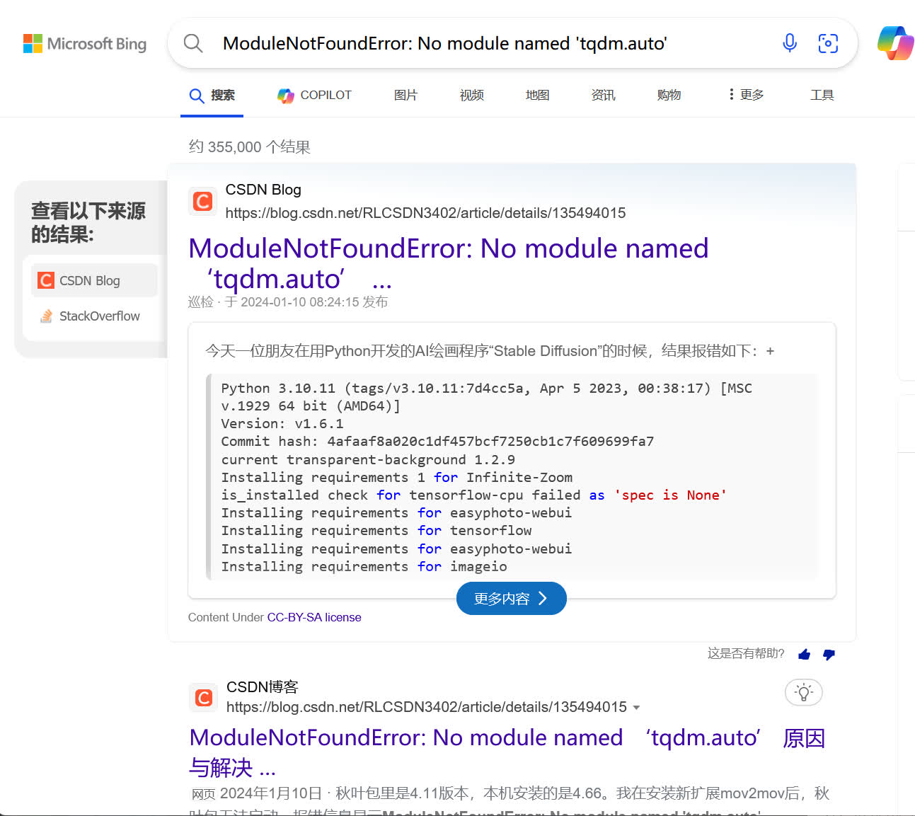 如果这个报错无法在绘世启动器的疑难解答中扫描出来,可以使用搜索引擎,将控制台中的报错描述(或者整个报错信息)粘贴到搜索引擎中进行搜索(或者其他平台),寻找报错的解决方法。